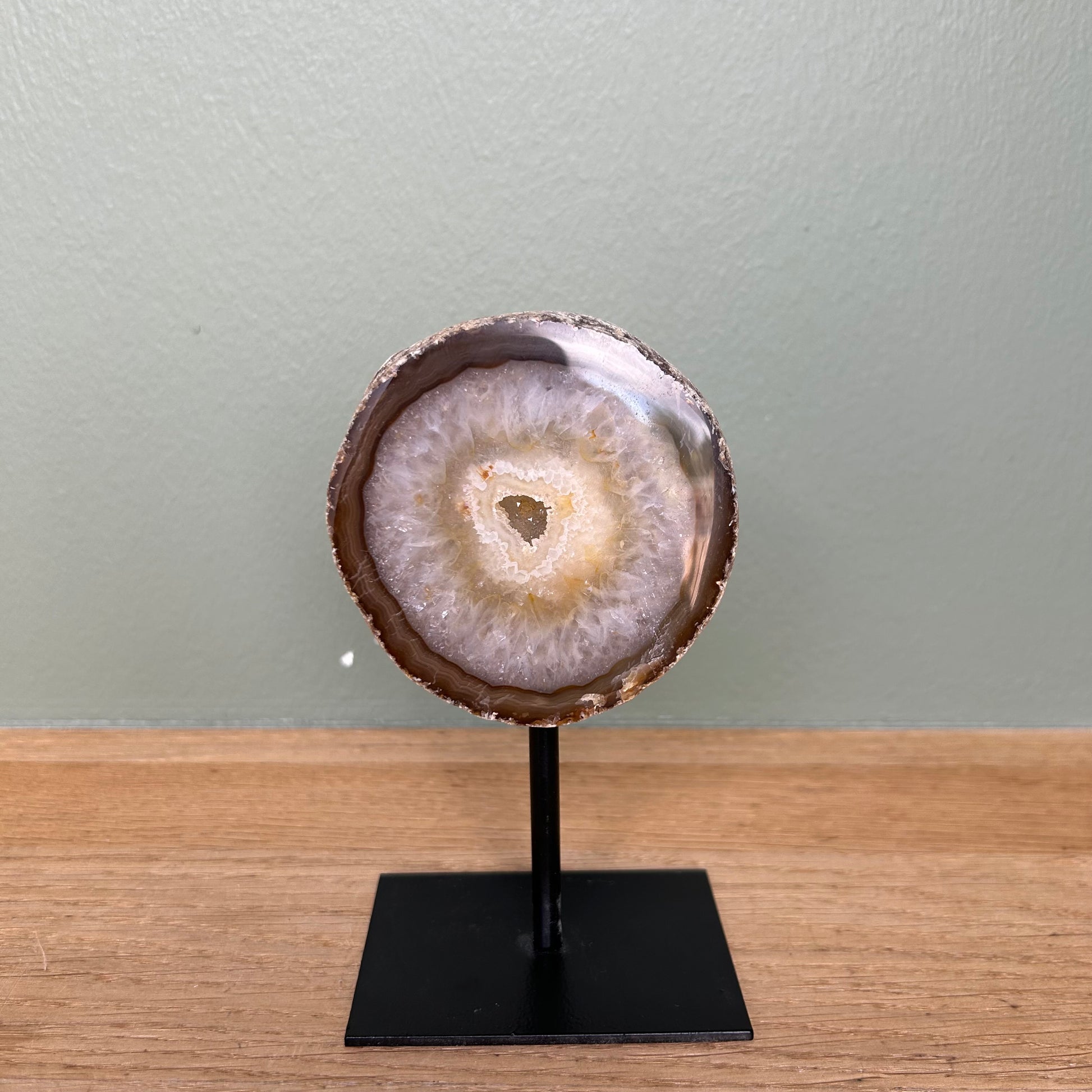 Agaat op standaard met glinsterende druzy van 14 centimeter hoog.