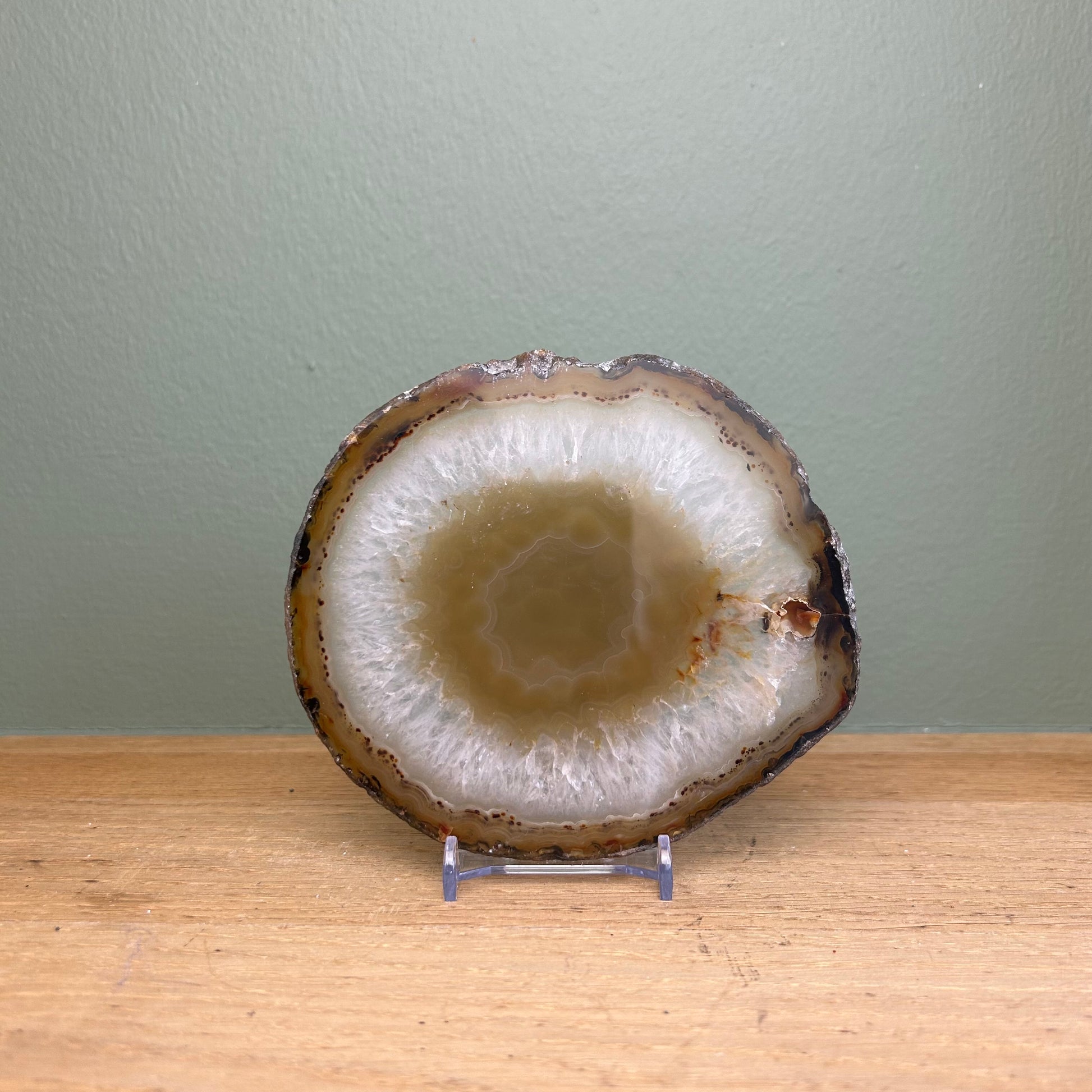 Agaatschijf van ongeveer 13 bij 12 centimeter.