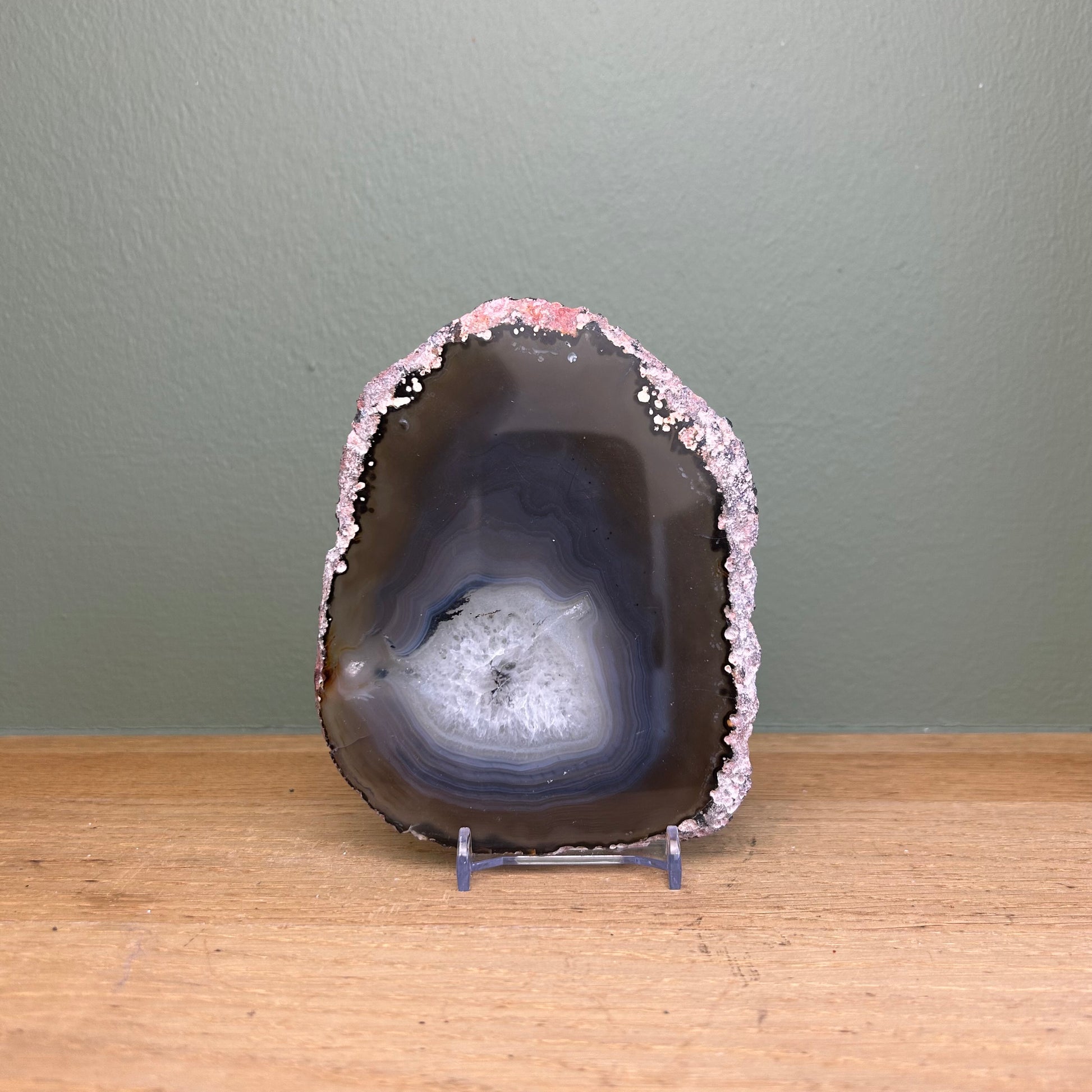 Agaatschijf van ongeveer 13 bij 10,5 centimeter.