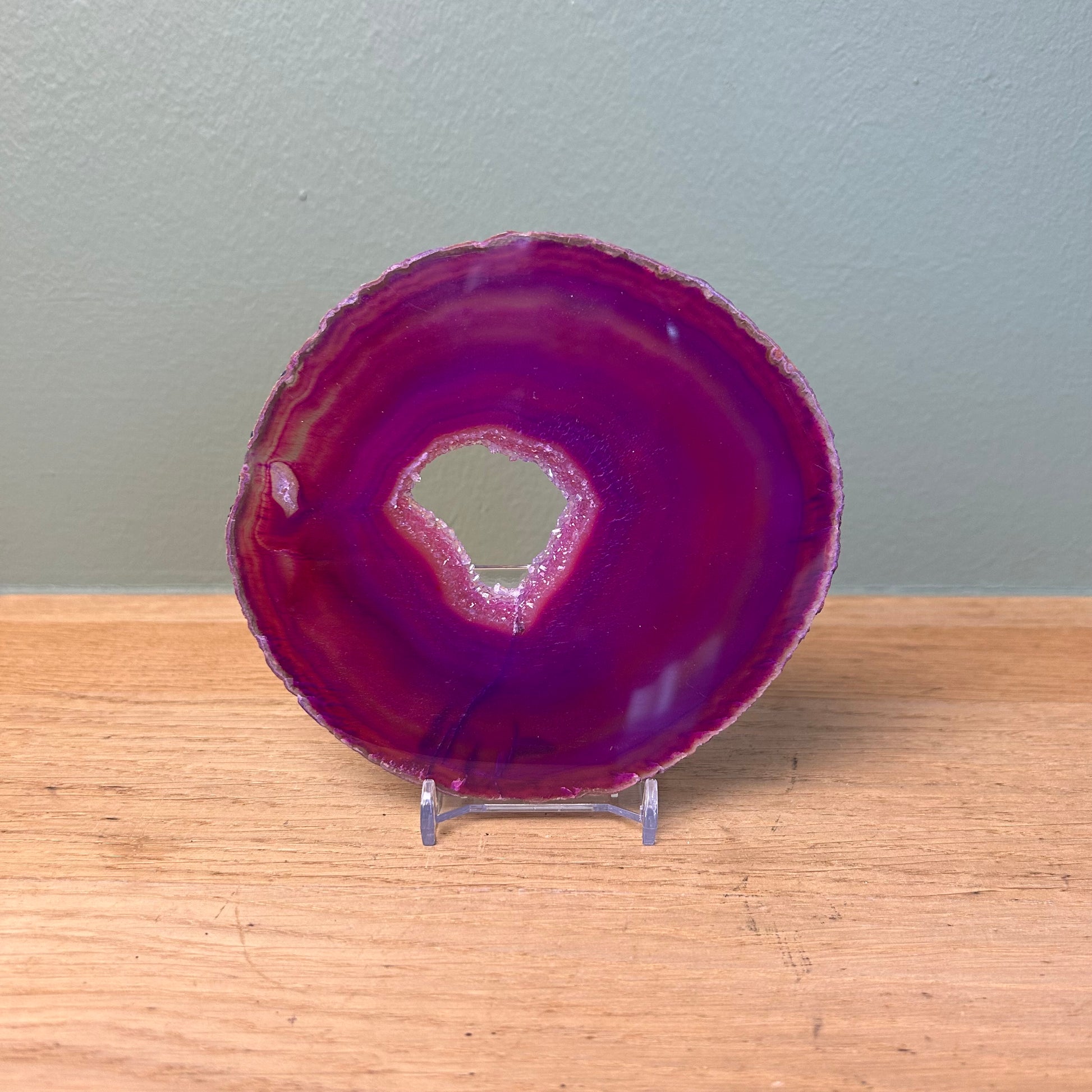 Bijgekleurde agaatschijf van ongeveer 12,5 bij 12 centimeter.
