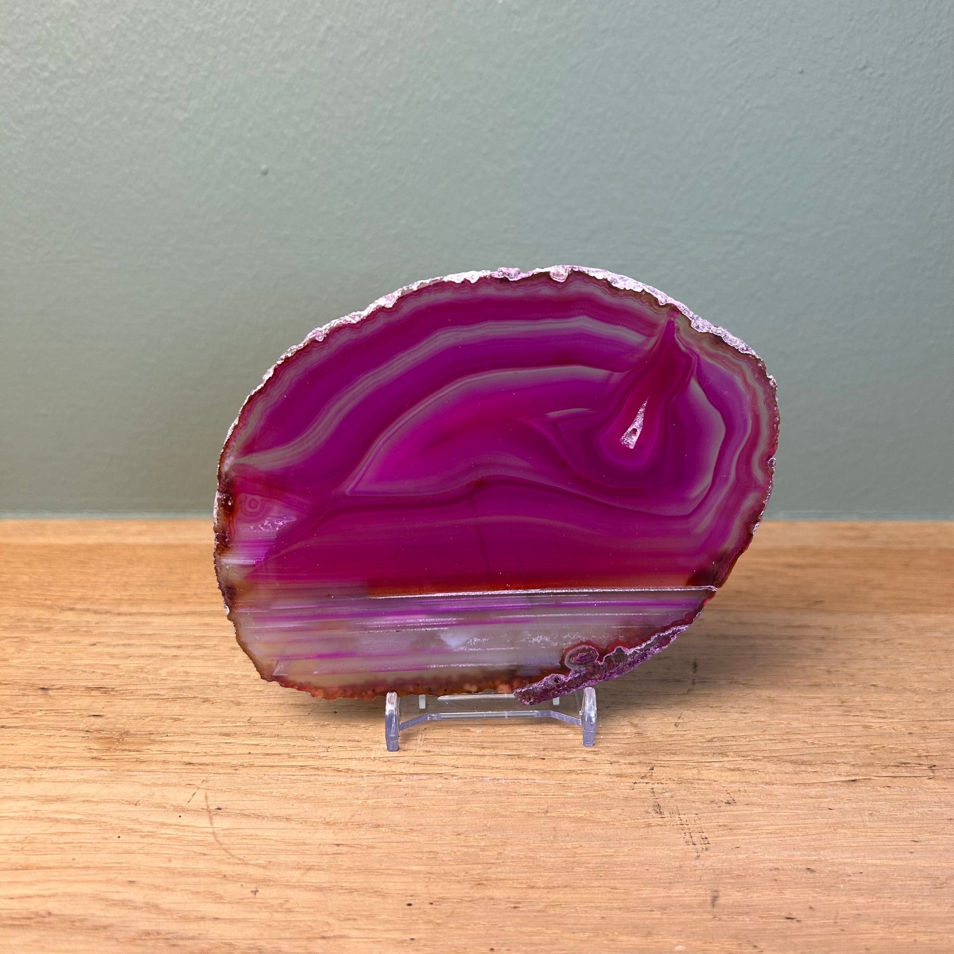 Bijgekleurde agaatschijf van ongeveer 13,5 bij 10,5 centimeter.