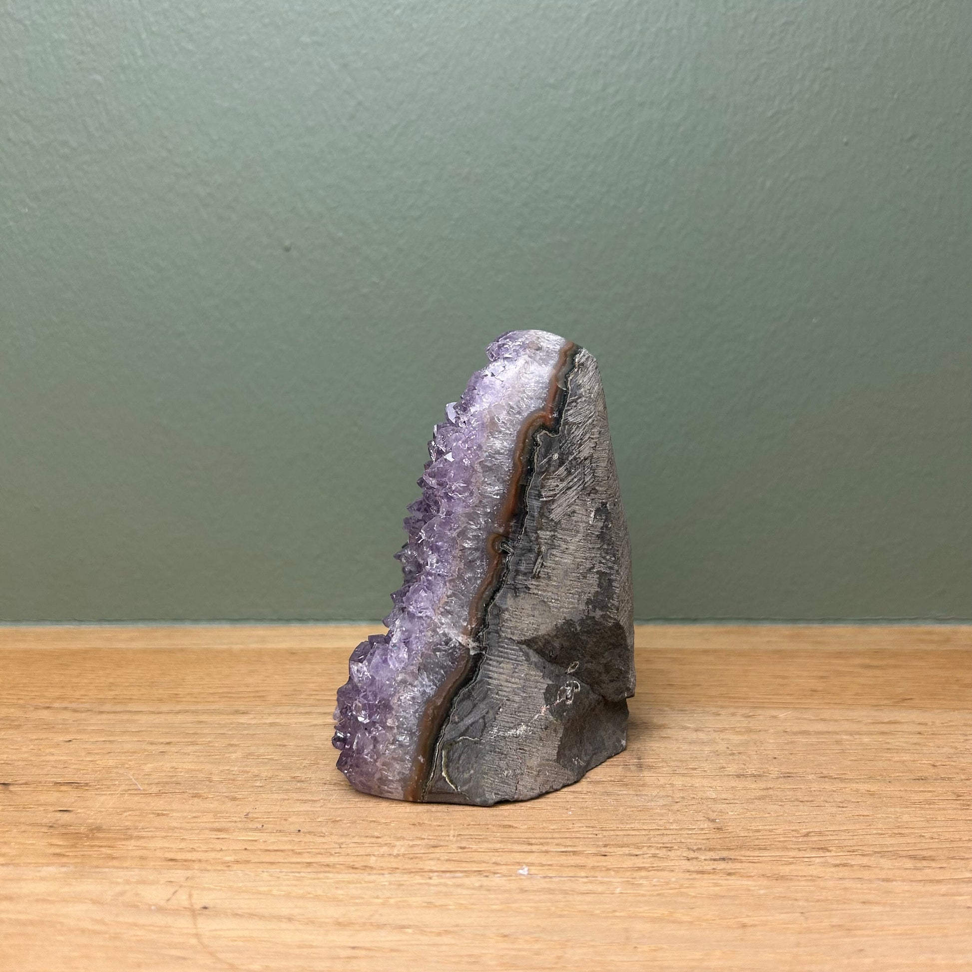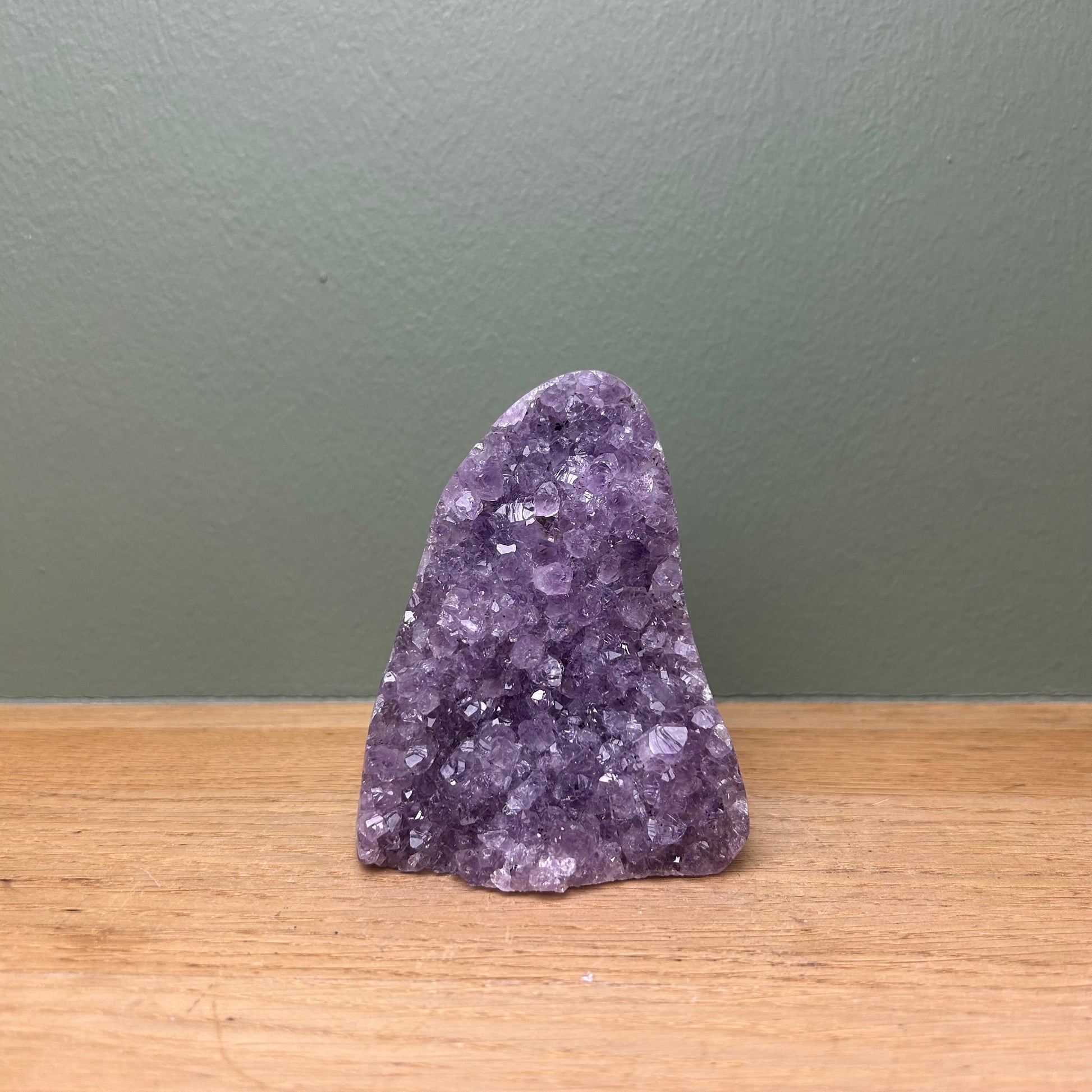 Amethist op standvlak van ongeveer 10 centimeter hoog.