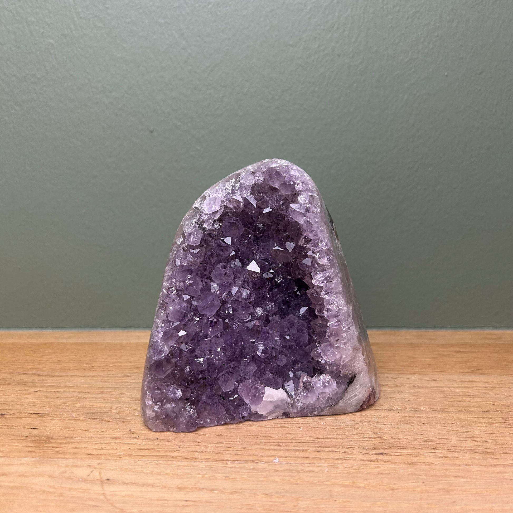 Amethist op standvlak van ongeveer 11 centimeter hoog.