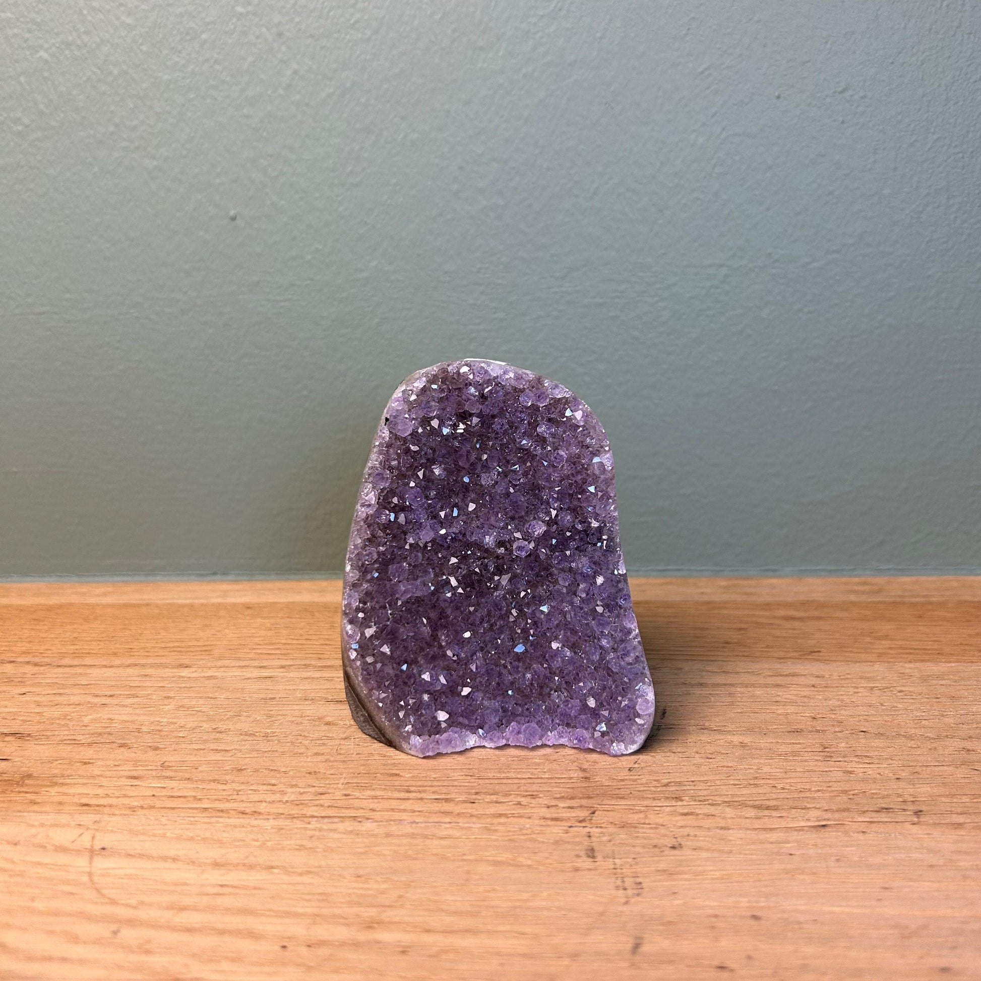 Amethist op standvlak van ongeveer 8,5 centimeter hoog.