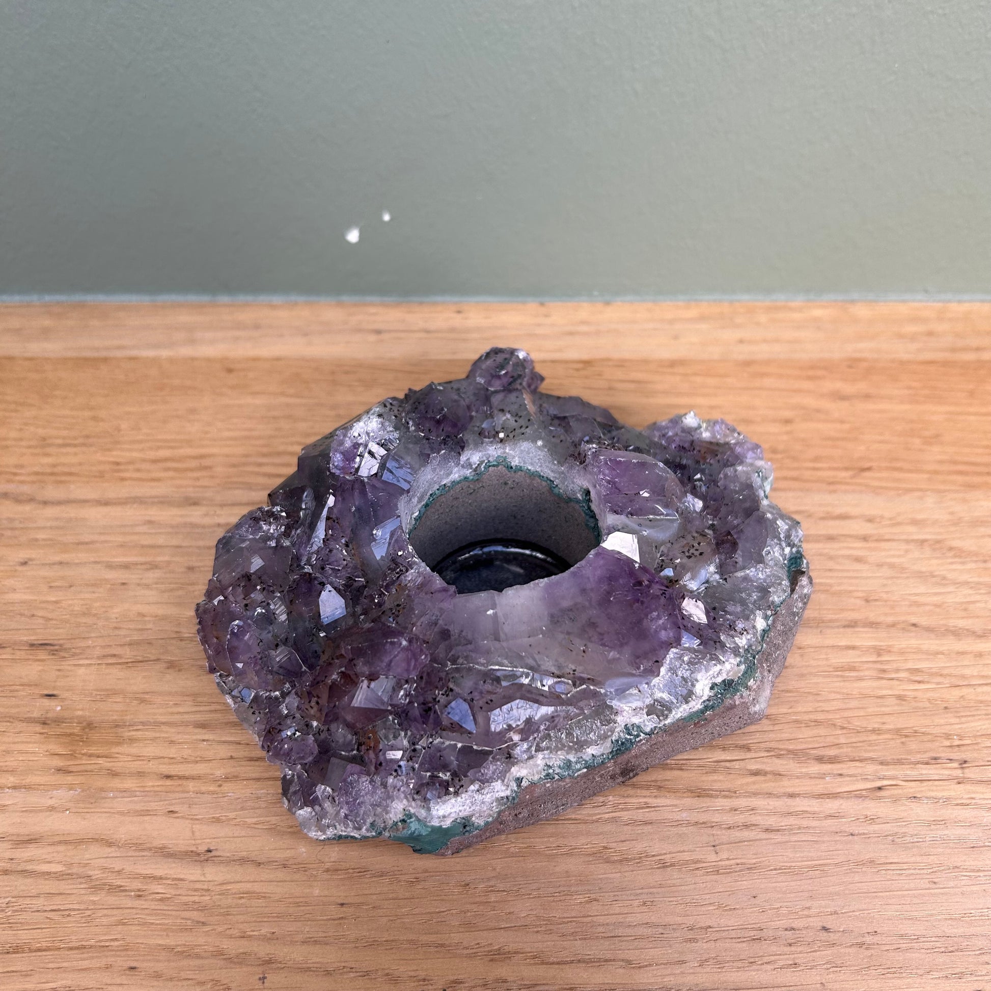 Waxine van amethist van ongeveer 12,5 bij 11 centimeter.