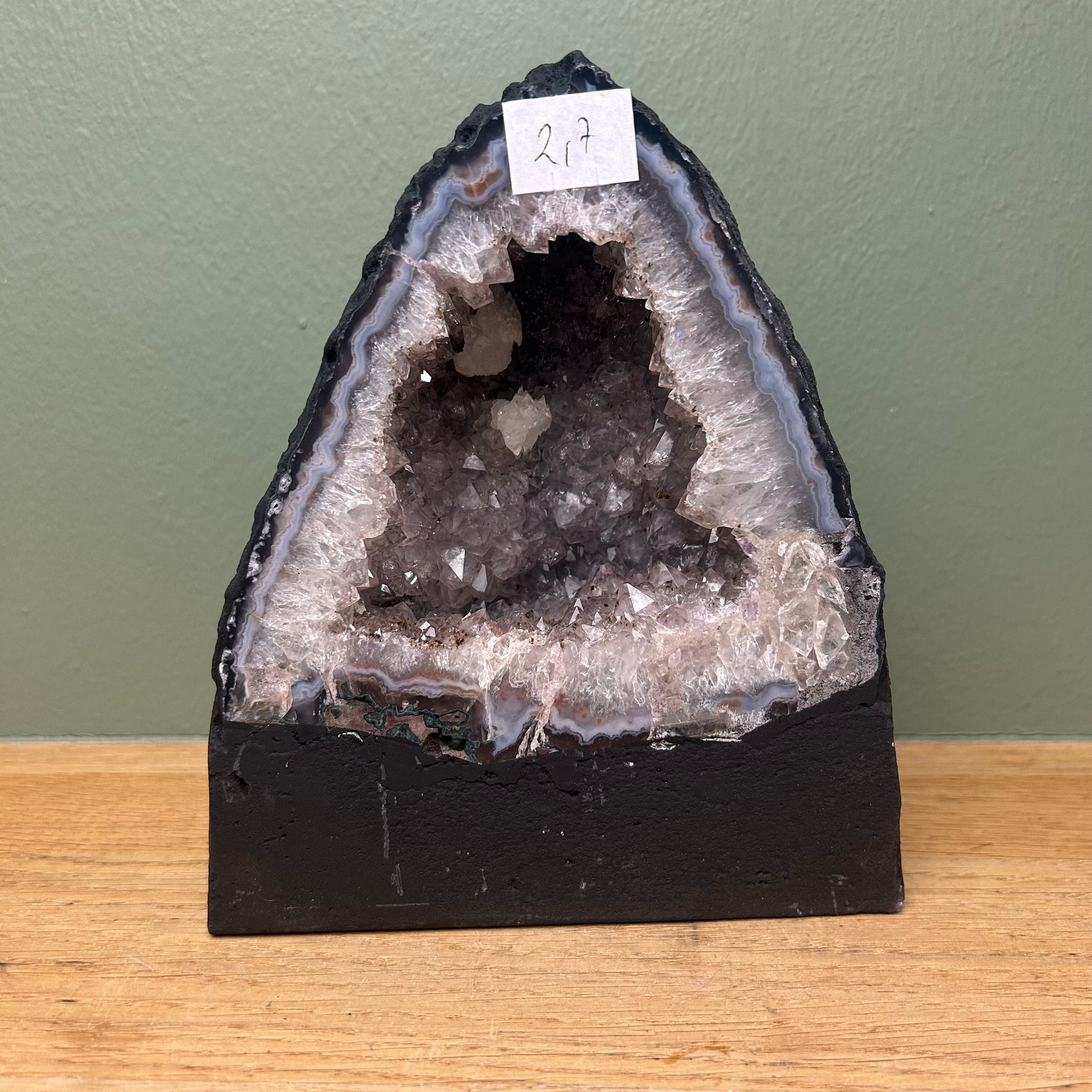 Kathedraal van agaat met amethist van ongeveer 17,5 centimeter hoog en 15 centimeter breed.