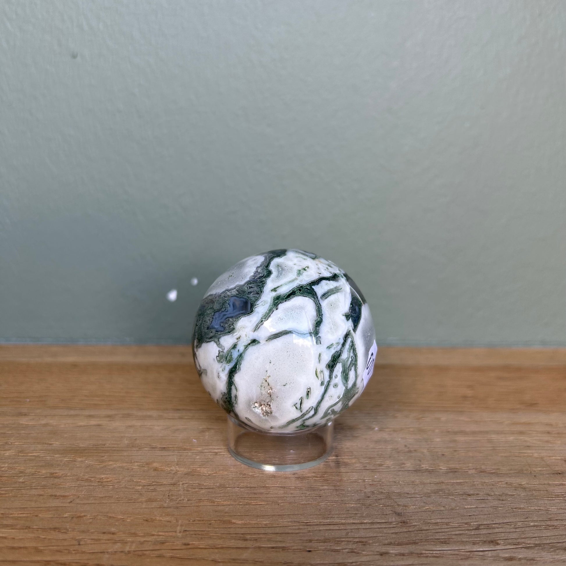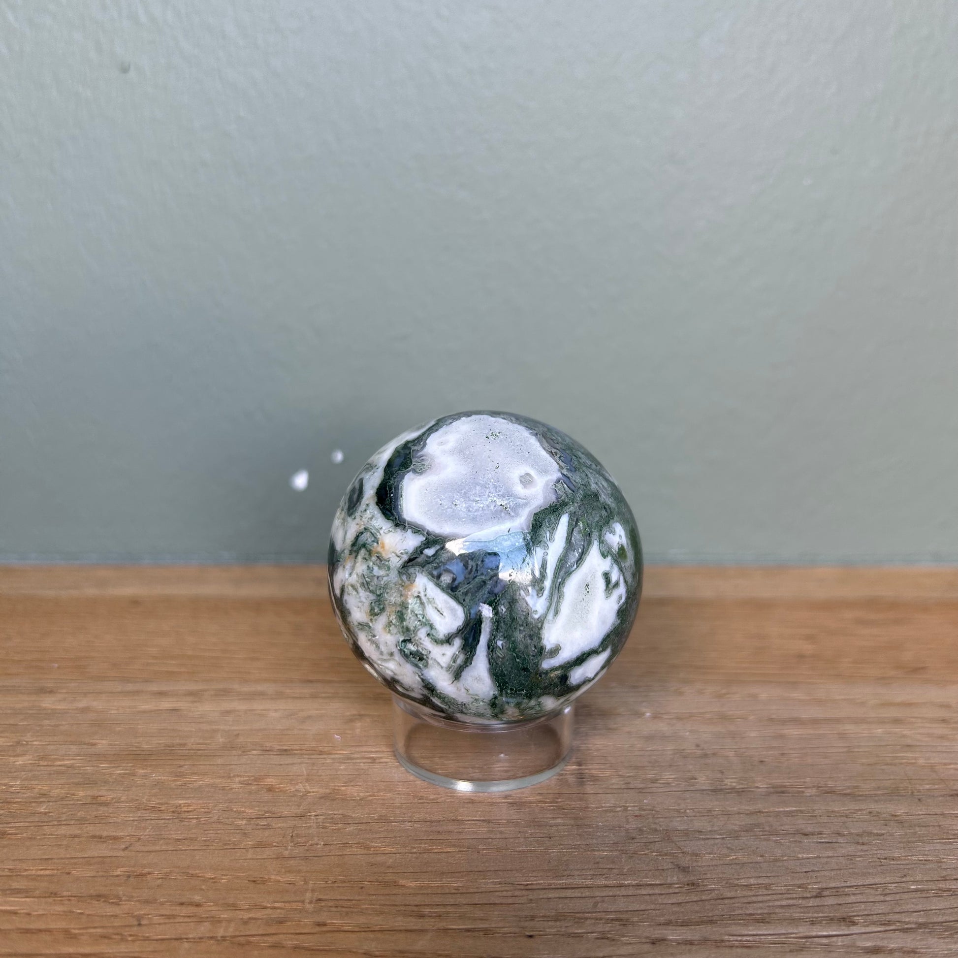 Bol van mosagaat met een diameter van ongeveer 5 centimeter.