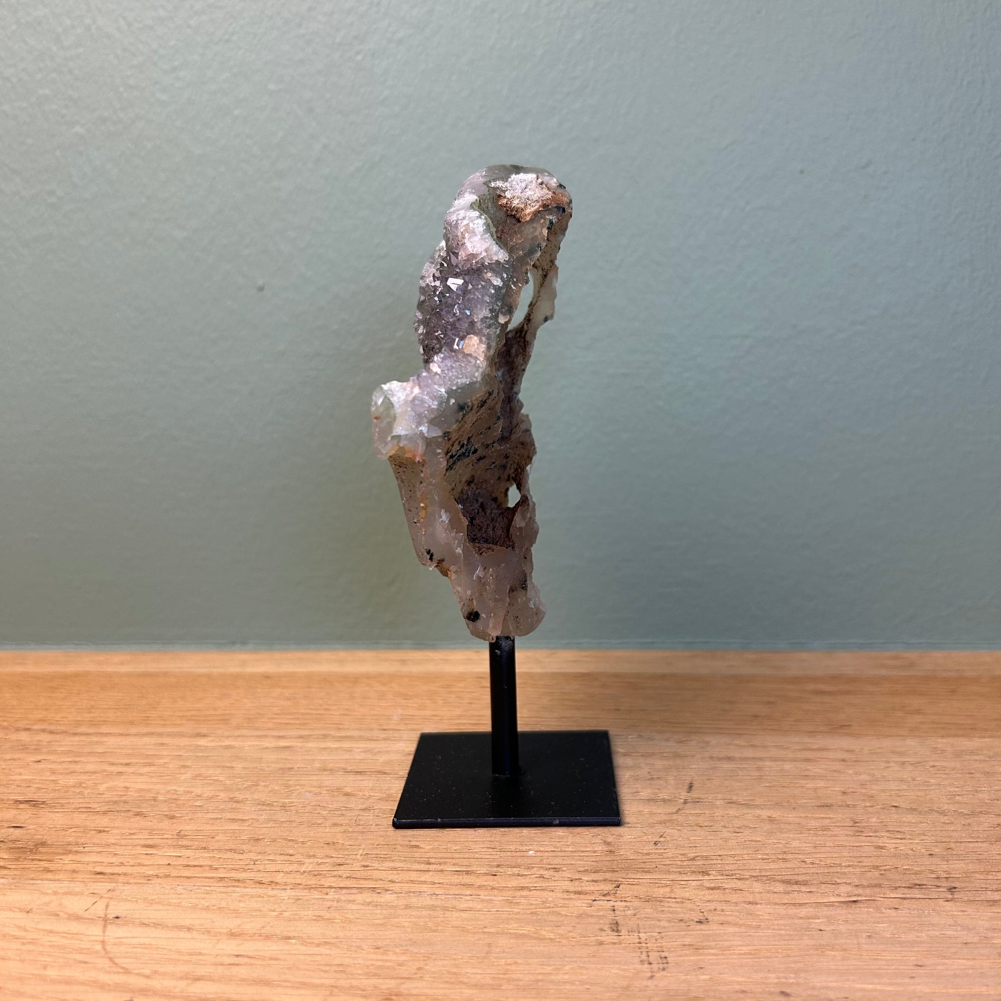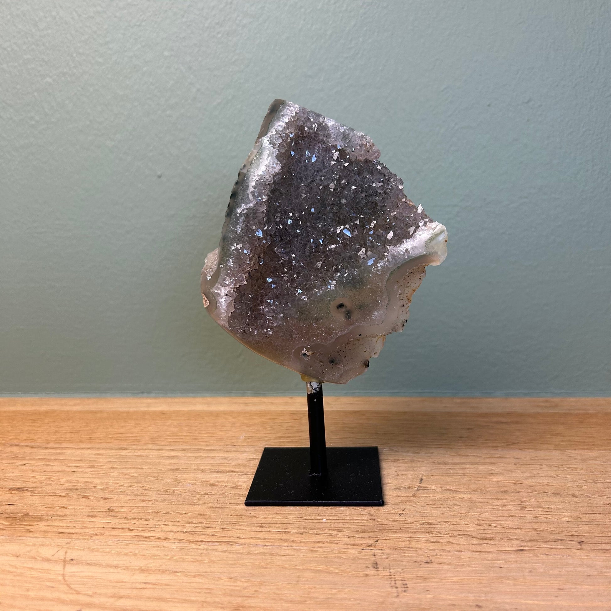 Rotsagaat op standaard van 14,5 centimeter hoog.